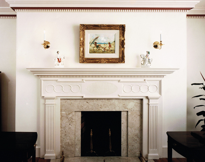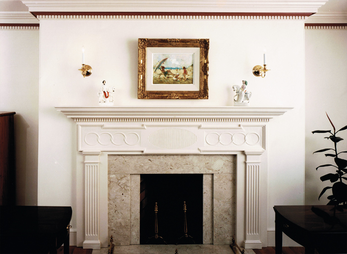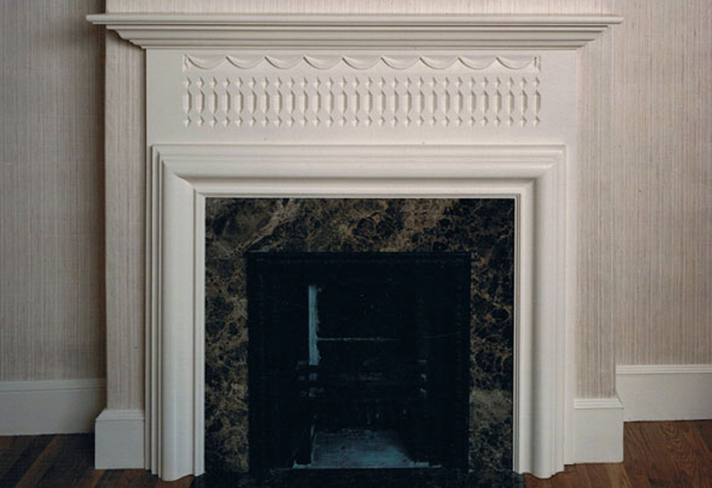 The classical elegance of the period mantel, blended tastefully with crown and cornice mouldings, wainscot and chairrail, makes an otherwise ordinary room – extra-ordinary. Hand carved Federal Period mantelpieces are built and hand carved in our shop, each unique, designed specifically to fit your fireplace style and room. Achieving a period fireplace is no easy task. Don’t be talked into a poorly proportioned firebox using fire brick because that is all the mason knows how to use. Proportions and materials matter. Through our design and consultation services, we can help you achieve a period fireplace for your style of home.