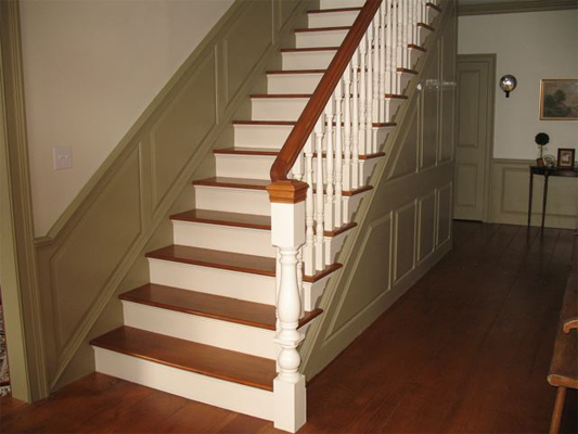 An authentic entrance to a special home.. We detail the 18th century staircase in simple or elaborate treatments. Based on the finest examples found in early New England homes. With hand carved balusters, raised paneling and scroll bracket detail, the result is a beautiful piece of woodwork providing your home with an entry of very special interest.